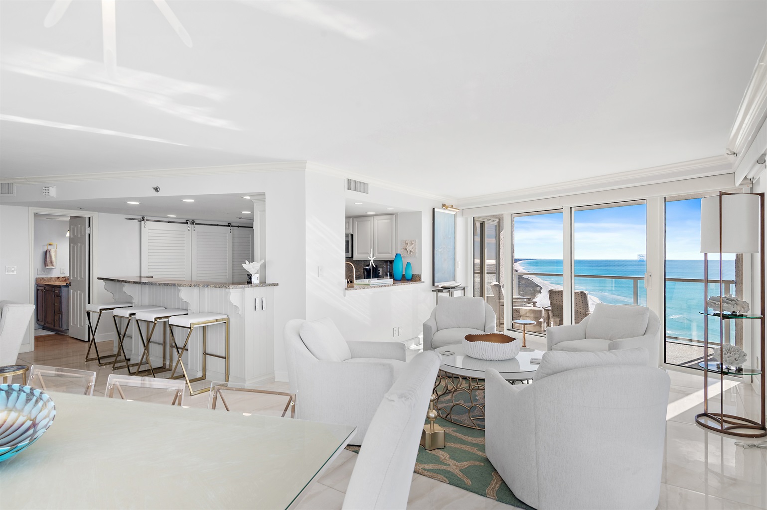 Enjoy being directly beachfront while having access to all the Sandestin Resort has to offer! The oversized sliding glass doors and large windows, along with the open floor plan, allow for unparalleled views of emerald water and powdery white shore. This unit has multiple balconies with access from the living space, the master bedroom, and the guest bedroom, allowing for shared and private outdoor seating.