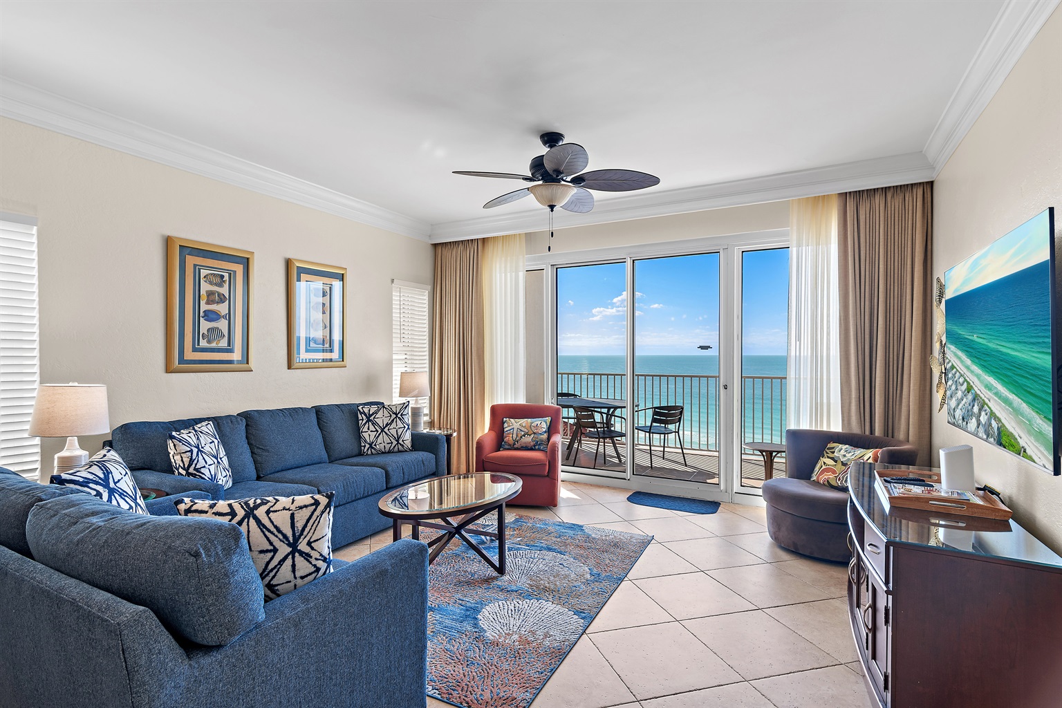 Enjoy the spectacular turquoise waters of the Gulf of Mexico through a wall of glass doors that open to a spacious balcony! The breathtaking balcony views from this unit allow you to sit back and watch the stunning sunset over the Gulf while enjoying your favorite beverage.