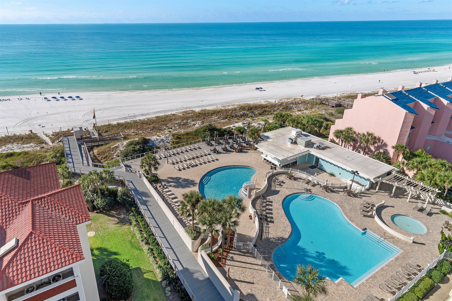 Immerse yourself in the beauty of the soft white, powdery sand and clear emerald-green waters just steps away from the condo. Our beach was voted the #1 Best Beach in the nation by Southern Living magazine! Seasonal daily chair rentals are offered along the resort's 600 ft. of private beach. Relax by either of the two beachfront pools or enjoy your favorite beverage from the Tiki Bar or lunch at the Blue Dunes Grille.