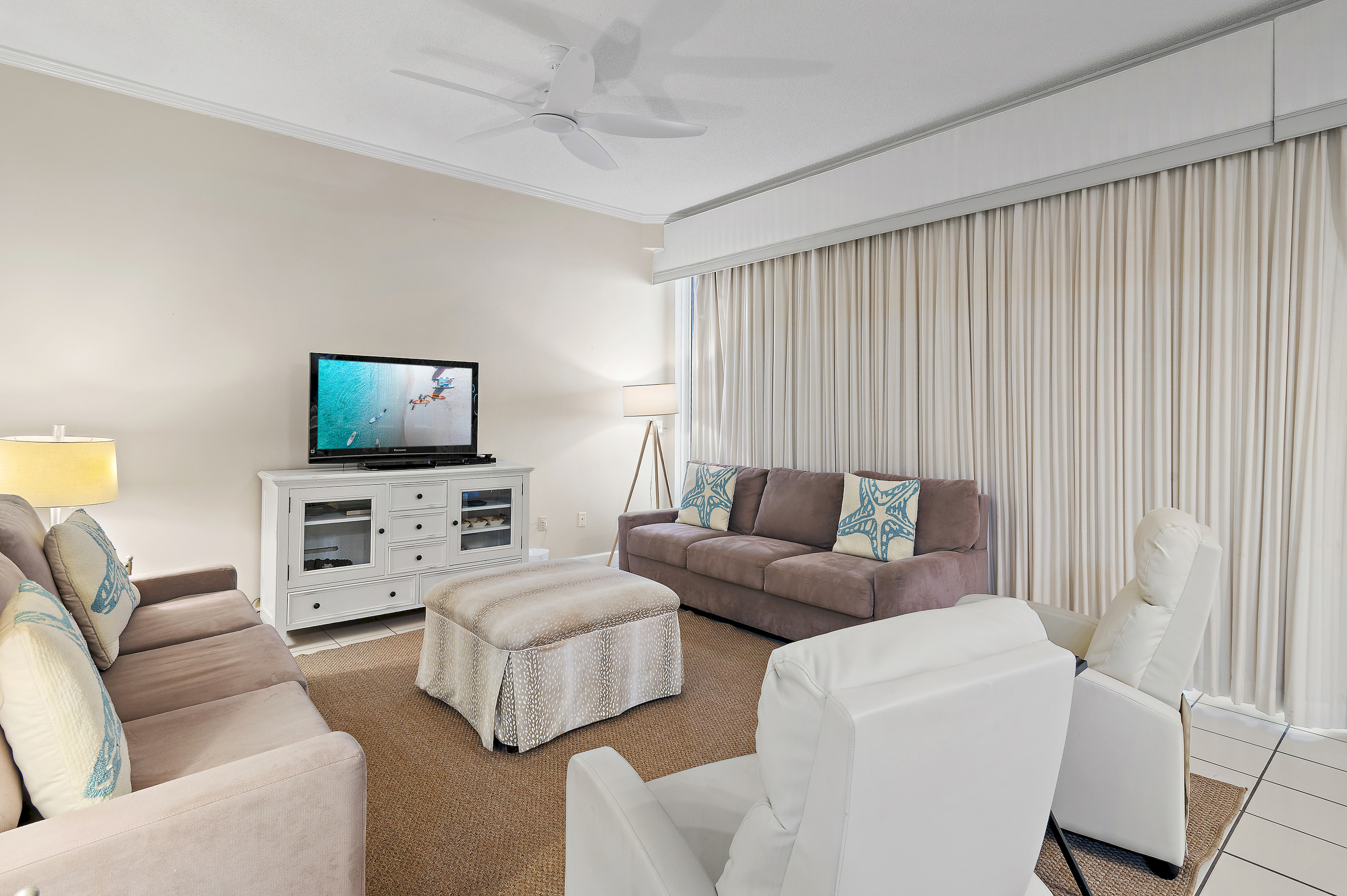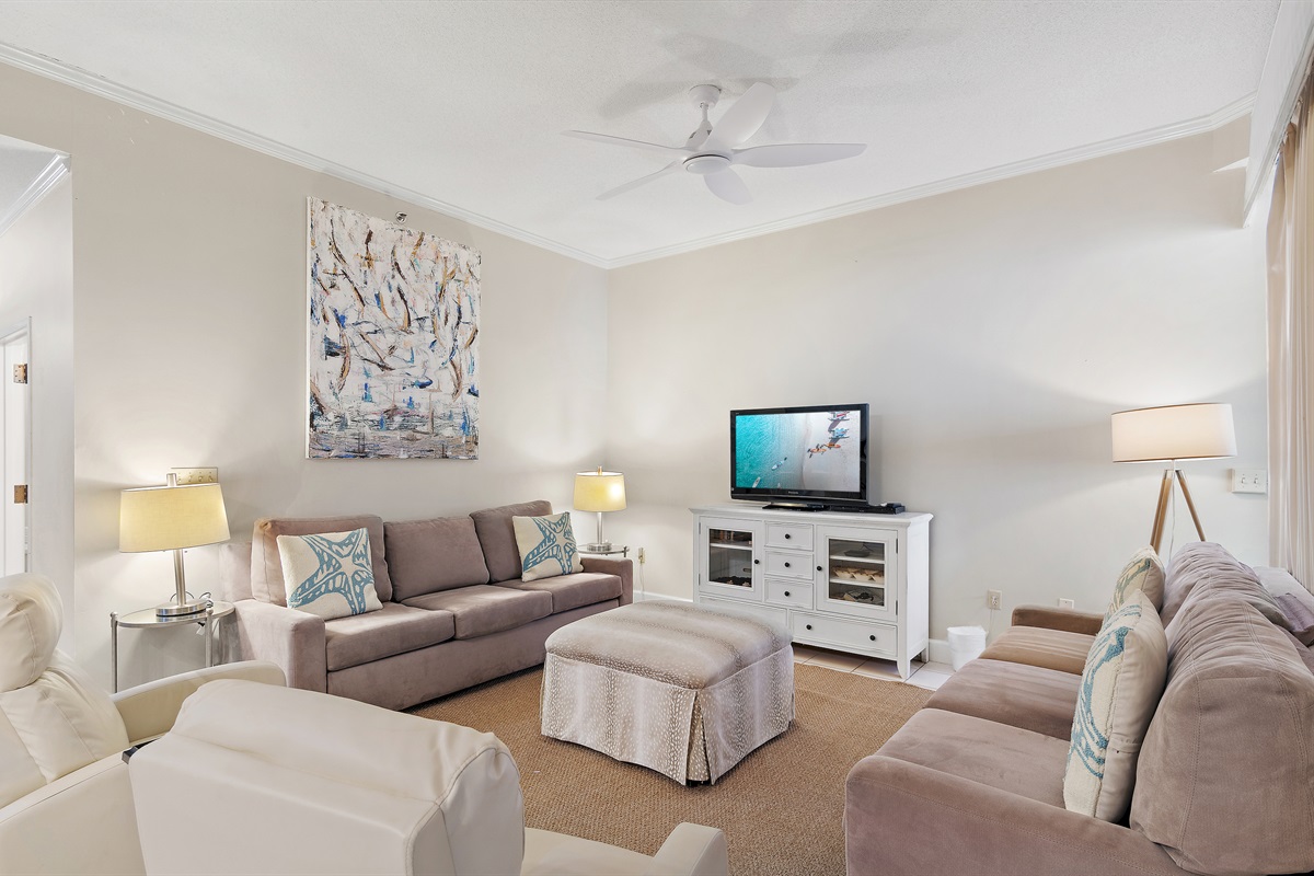 This unit features thoughtfully selected décor, cultivating a warm and relaxing atmosphere for our guests, offering an ideal retreat where comfort and style come together effortlessly. Being just steps from the beach provides the perfect setting to create lasting memories! Enjoy the convenience of being within walking distance of multiple restaurants, including an on-site beach bar and café. You’ll also have exclusive access to the coveted Tides Pickleball courts, mini golf, basketball courts, and shuffleboard. If you're visiting during holidays featuring fireworks, you'll have one of the best seats on Miramar Beach.