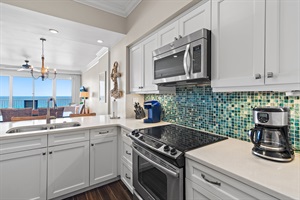 Soak up the warm Florida sun from the beachfront balcony as you enjoy your favorite beverage while taking in the breathtaking views or cozy up in a warm, comfortable setting in the spacious living room while enjoying your favorite shows on the flat-screen TV. The kitchen is beautifully decorated and fully equipped providing everything needed to make your favorite meal. The condo has a full-size washer/dryer, secure WIFI connection, along with Cable TV.