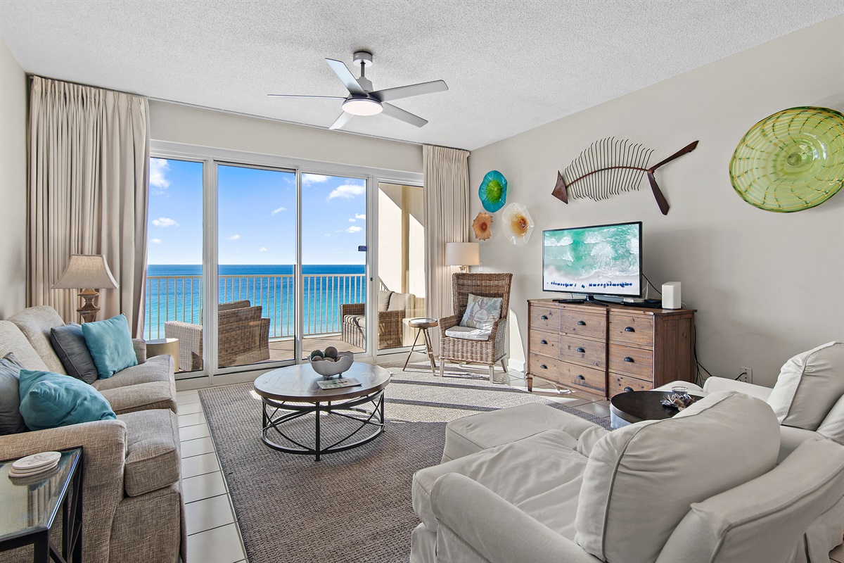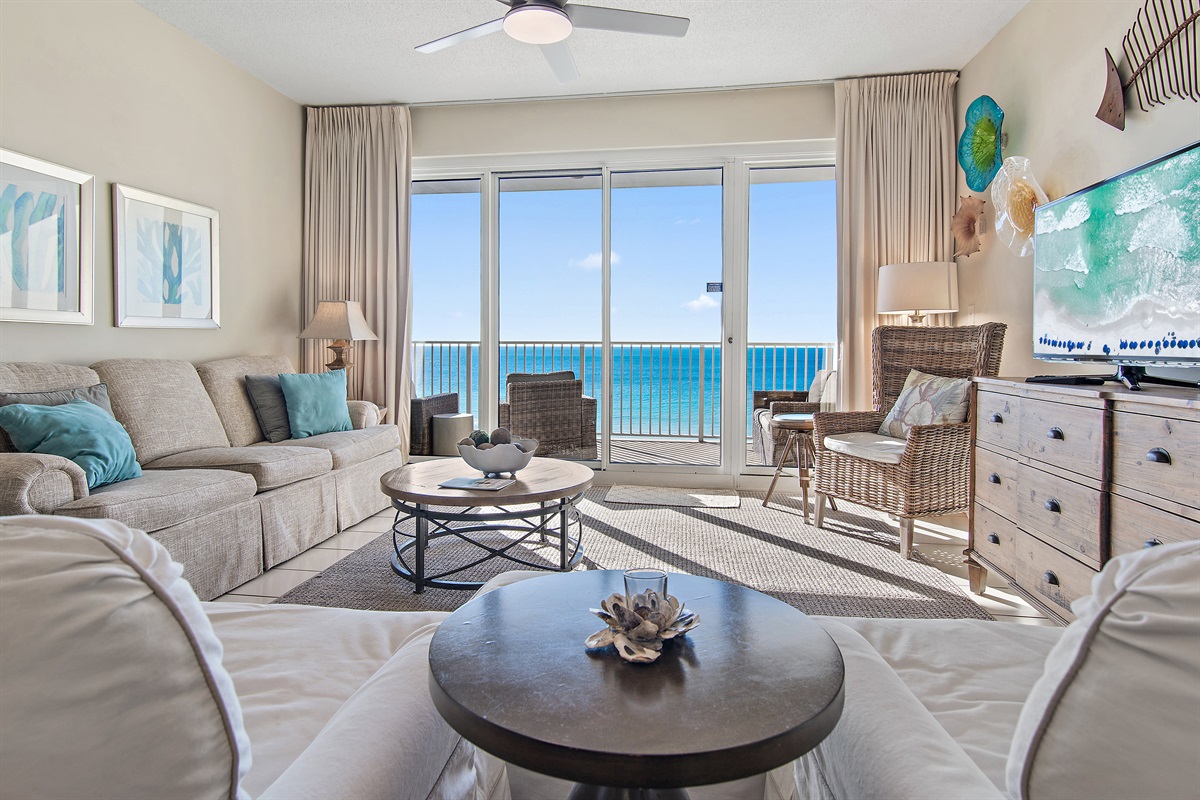 2 Bedrooms • 2 Bathrooms 2 Baths • Sleeps 1-6Soak up the gorgeous beachfront views of the Emerald Coast from Tides 802! You will not be disappointed with what this beautiful unit has to offer. Whether you are a sunrise coffee drinker or a sunset wine drinker, this balcony view is worthy of great camera shots!