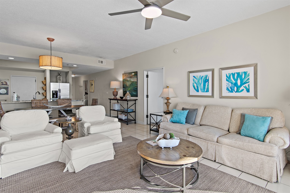 The Tops'l Beach & Racquet Resort is a private gated community offering special amenities such as a sun deck and gas grills. Fine dining is available at the onsite Ocean Club Restaurant. It's conveniently located near top-rated shopping and dining options in the area like Silver Sands Outlet Mall, Baytowne Wharf, and Grand Boulevard in Sandestin. The resort is conveniently located in the Miramar Beach/Sandestin area, 10 miles east of Destin and 3 miles west of CR-30A. The resort offers fun and relaxation for all ages and also provides a quiet, secluded peace of mind while being only minutes away from activities, shopping, dining, and so much more! The Tides building is beachfront – only a few quick steps from the powdery white, sandy beaches. A nature preserve calmly sits to your East allowing for gorgeous scenery and glimpses of wildlife as well as far less-crowded beaches.