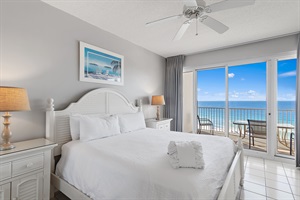 Enjoy the spectacular turquoise waters of the Gulf of Mexico through a wall of glass doors that open to a spacious balcony from Tides Unit 804! The breathtaking balcony views from this unit allow you to sit back and watch the stunning sunrise or sunset over the Gulf.