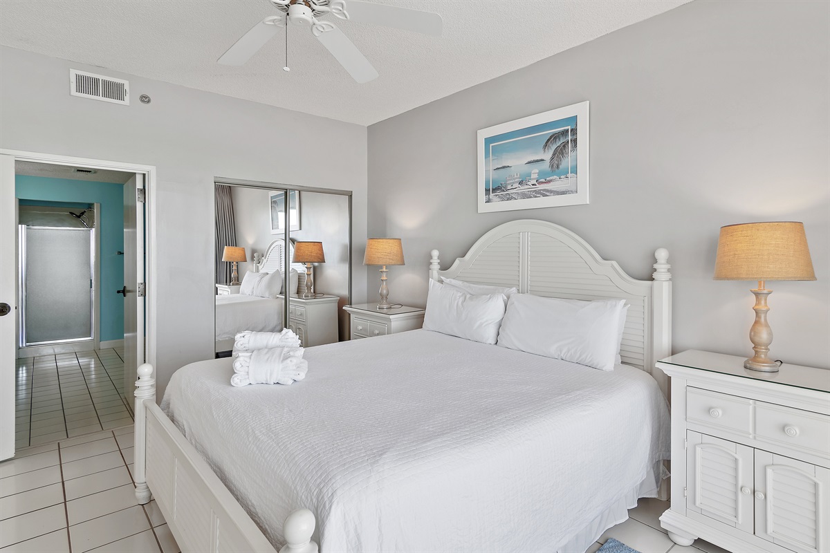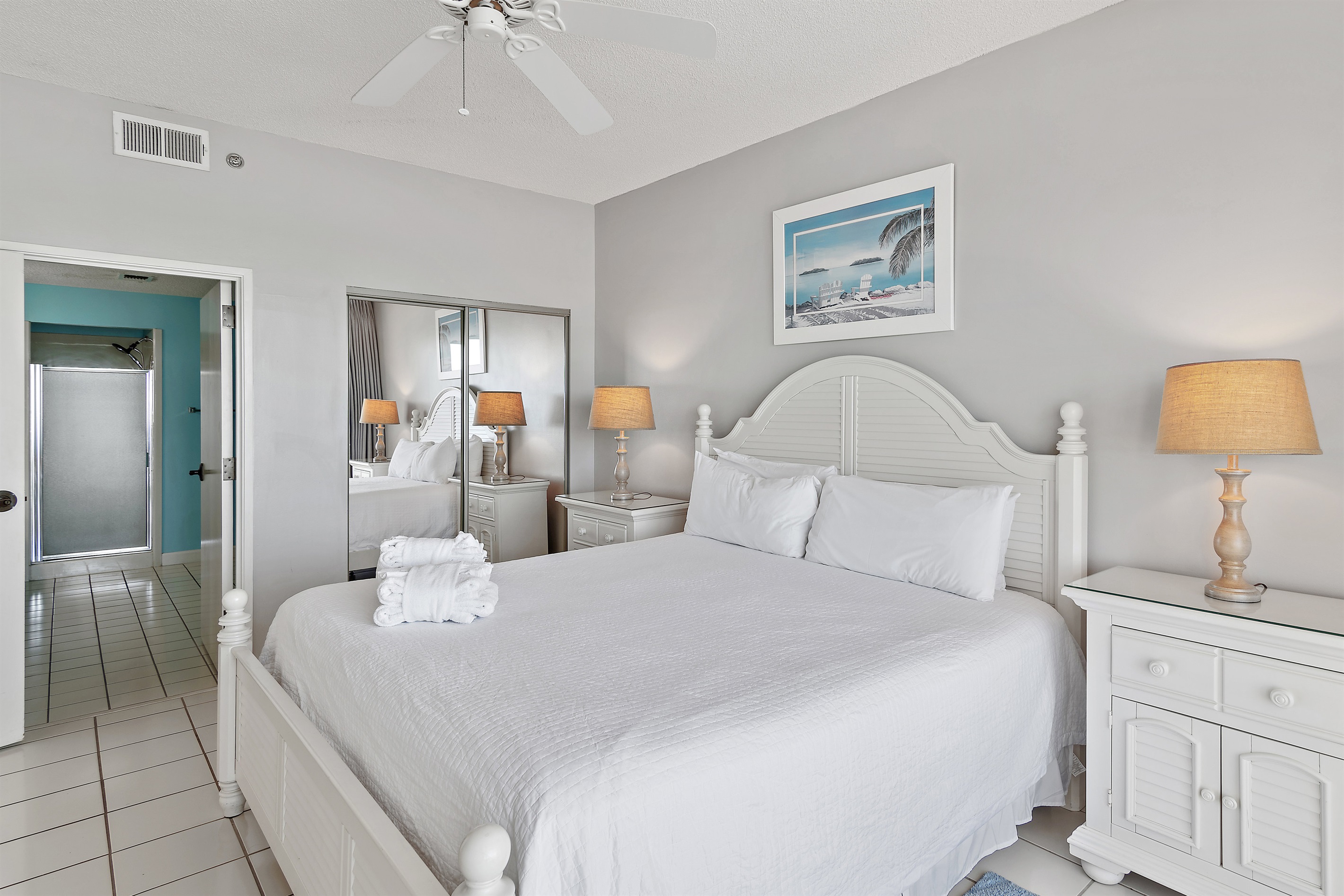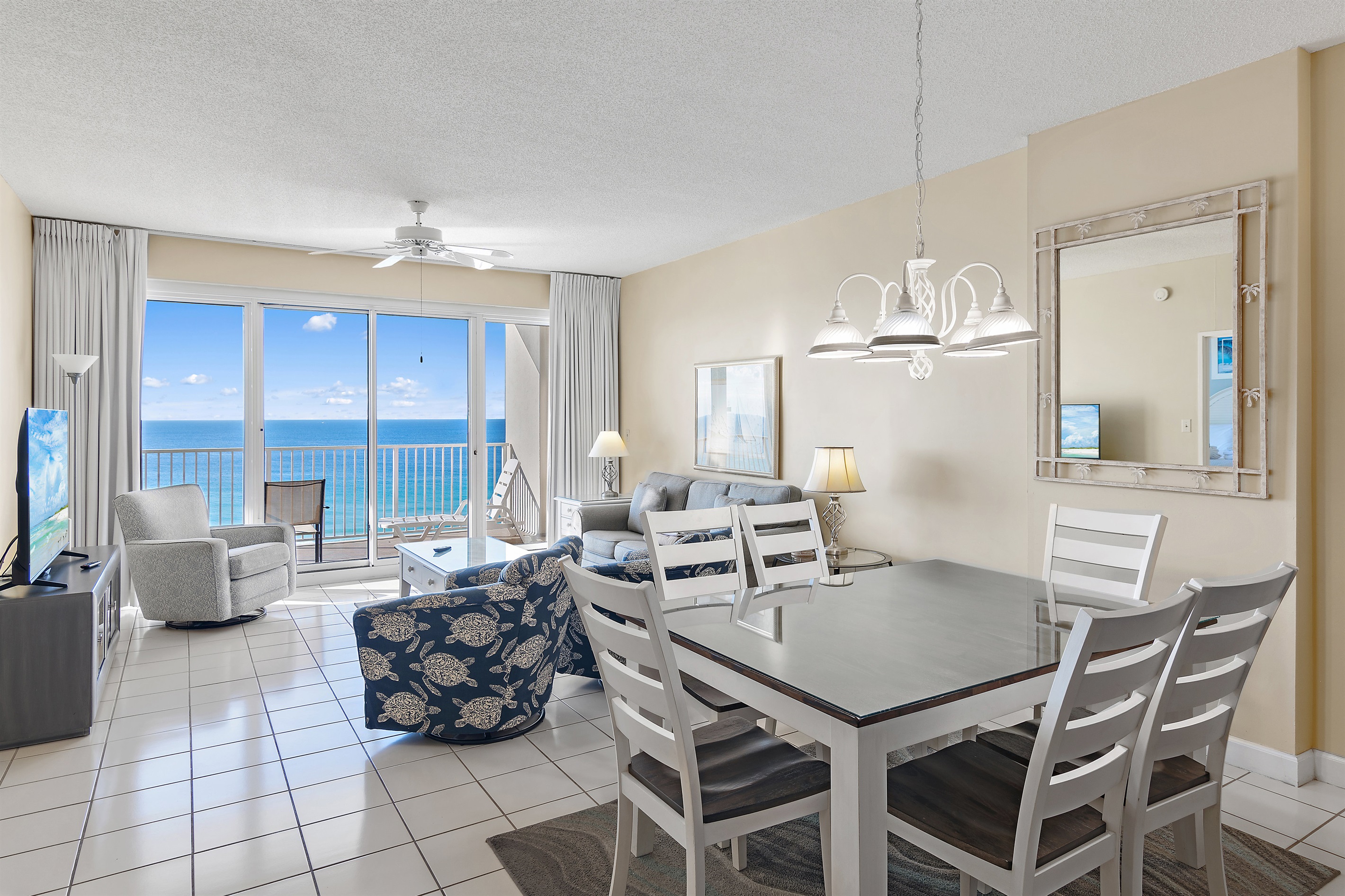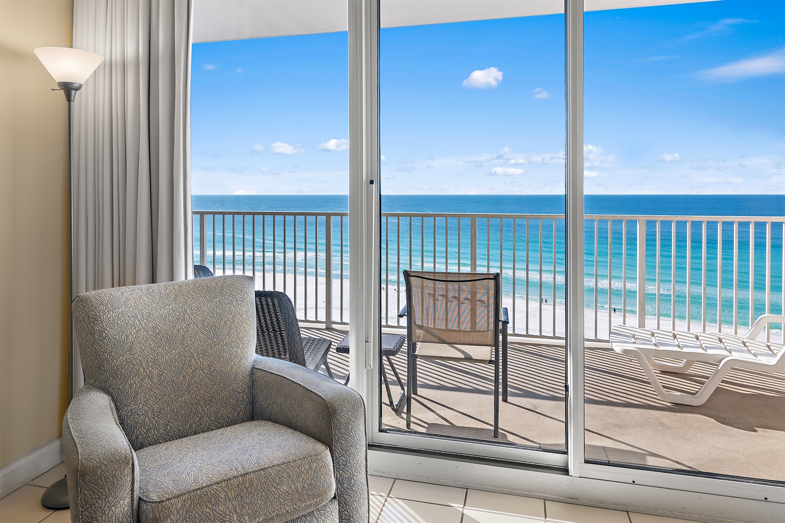 Enjoy the spectacular turquoise waters of the Gulf of Mexico through a wall of glass doors that open to a spacious balcony from Tides Unit 804! The breathtaking balcony views from this unit allow you to sit back and watch the stunning sunset over the Gulf while enjoying your favorite beverage.