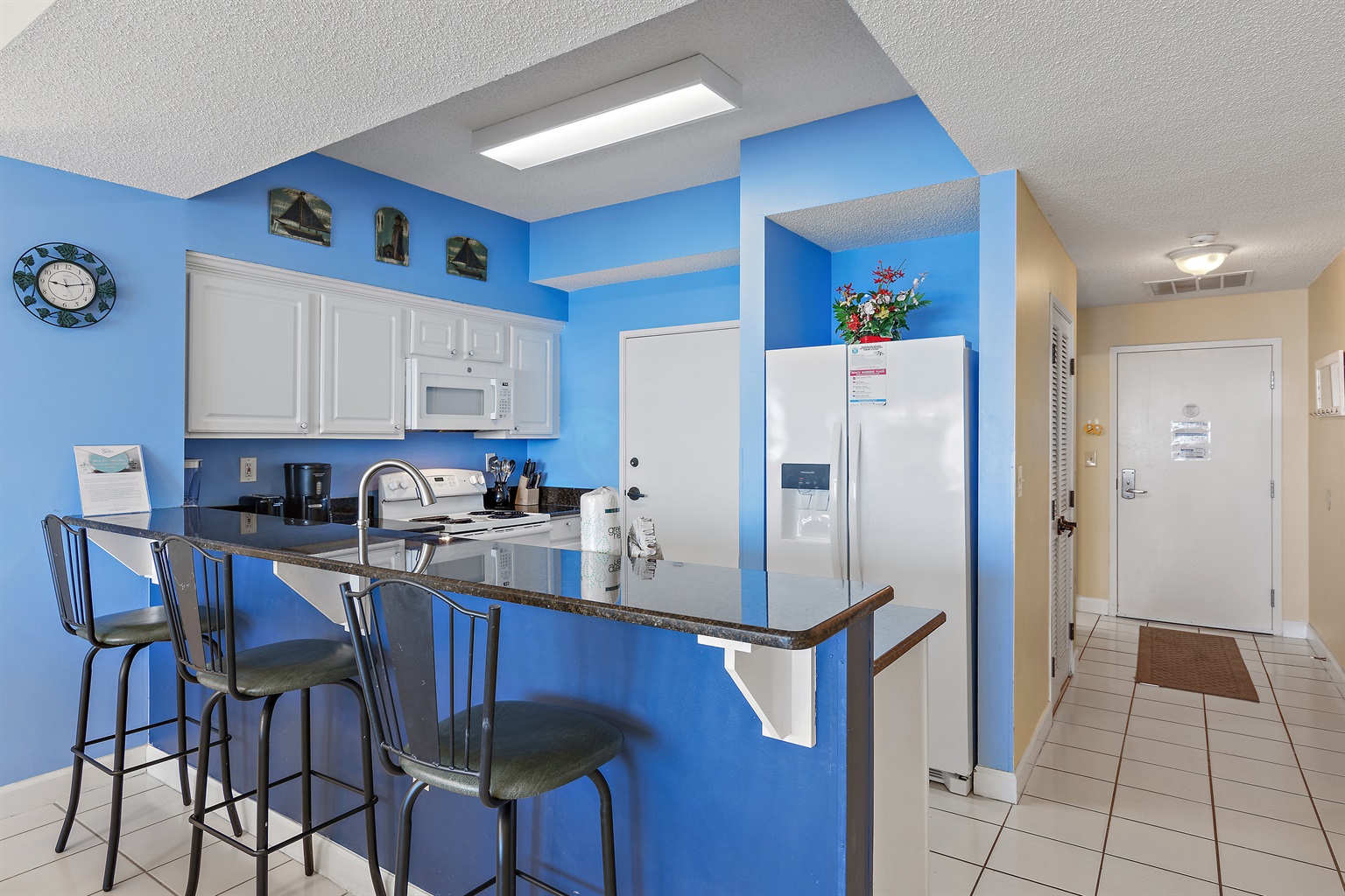 Cozy up in a warm, comfortable setting with flat-screen TVs throughout. The kitchen is beautifully decorated and fully equipped. The condo has a washer/dryer, secure WIFI connection along with a Smart DVD Player and Cable TV.